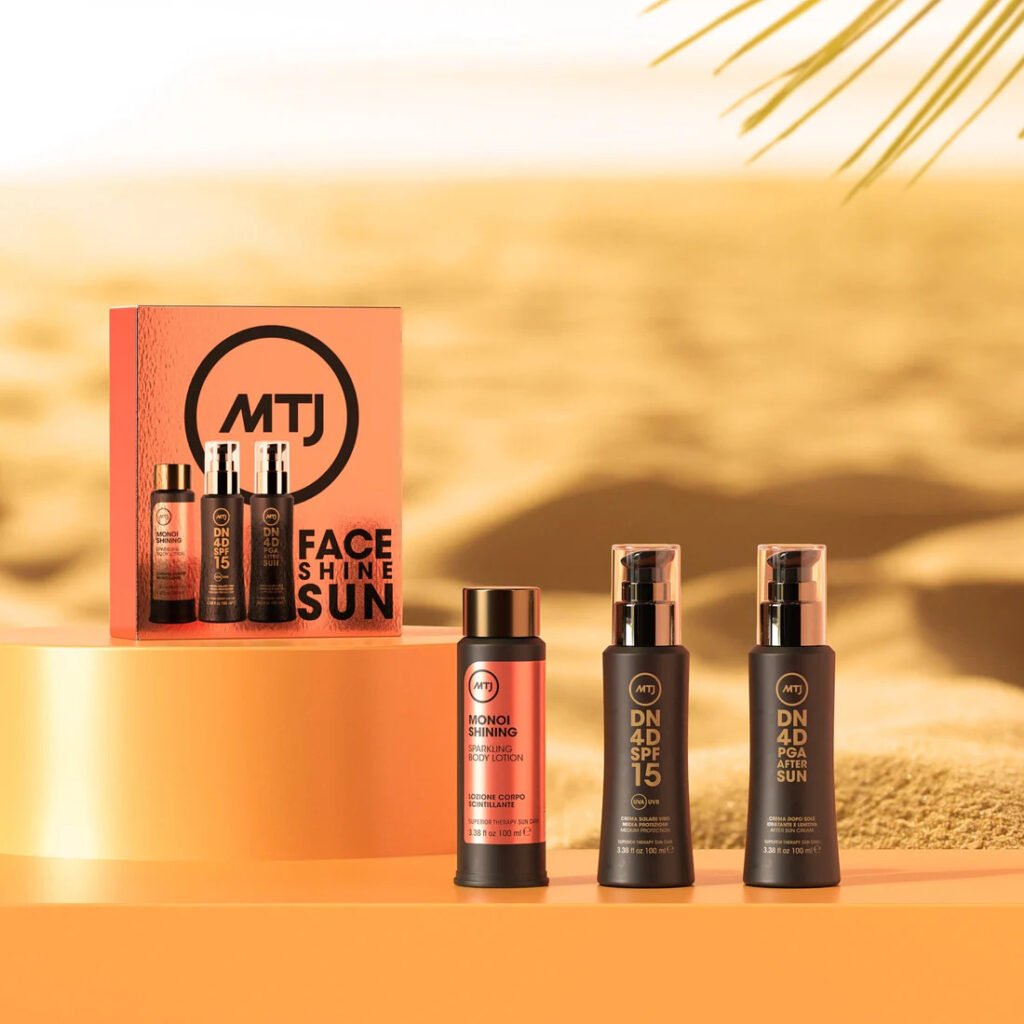 Набір для догляду за обличчям (крем для обличчя SPF15, мерехтливий лосьйон, крем після засмаги) MTJ Face Shine Sun Kit