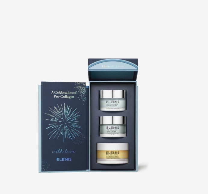 Антивіковий набір для шкіри обличчя: бальзам для вмивання, денний, нічний креми на о-ві аромоолій, колагену ELEMIS Kit ProCollagen Celebration Trio