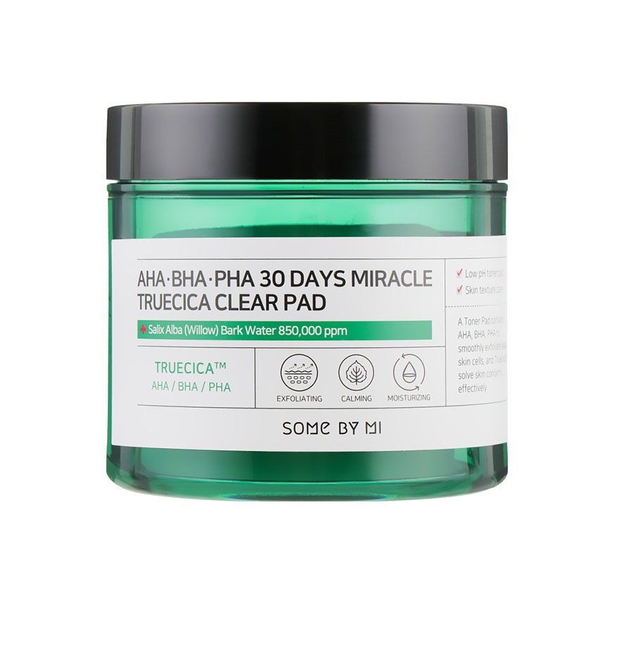 Пілінг-пади з кислотами для вирівнювання рельєфу шкіри, позбавлення висипань та пігментації Some By Mi AHA.BHA.PHA 30 Days Miracle Truecica Clear Pad 70 шт