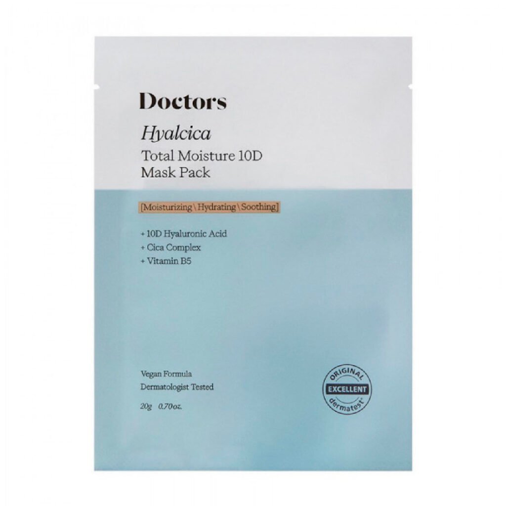 Тканинна маска з 10 формами гіалуронової кислоти, аденозином, пантенолом, алантоїном та центелою Doctors Hyalcica Total Moisture 10 D Mask Pack 20g