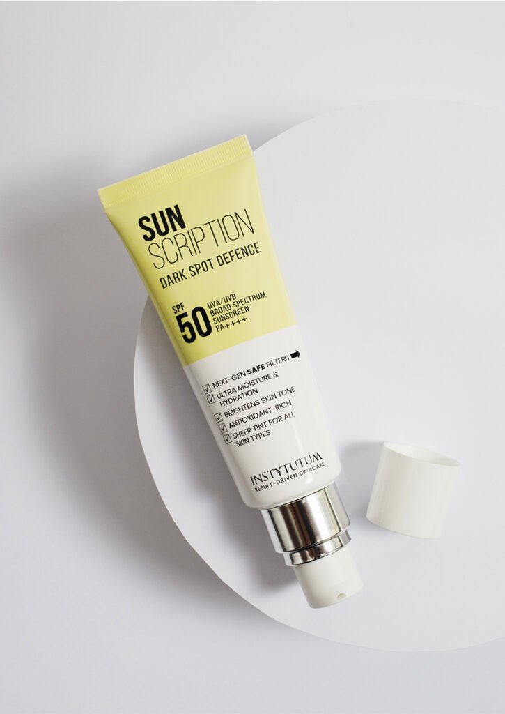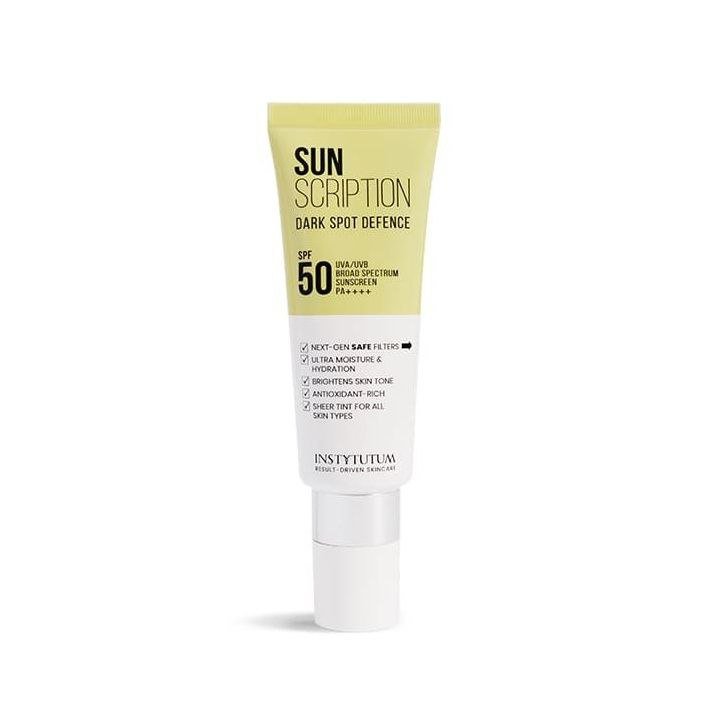Сонцезахисний крем з освітлювальним ефектом з екстрактами салікорнії, кактуса сагуаро, кореня турнепса, пептидами какао Instytutum Sunscription Dark Spot Defence SPF50 50ml