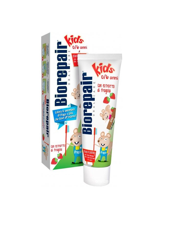 Зубна паста для дітей 0-6 років без фтору, з рідкою емаллю з екстрактом суниці Biorepair Junior Topo Gigio Cartoon 50ml