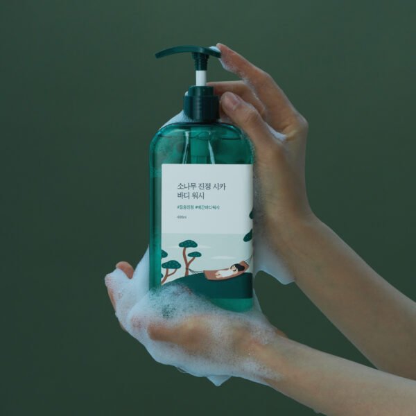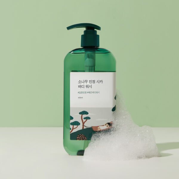 Заспокійливий гель для душу з екстрактом голок сосни, AHA, BHA та PHA кислотами, 3 видами гіалуронової кислоти ROUND LAB Pine Calming Cica Body Wash 400 ml