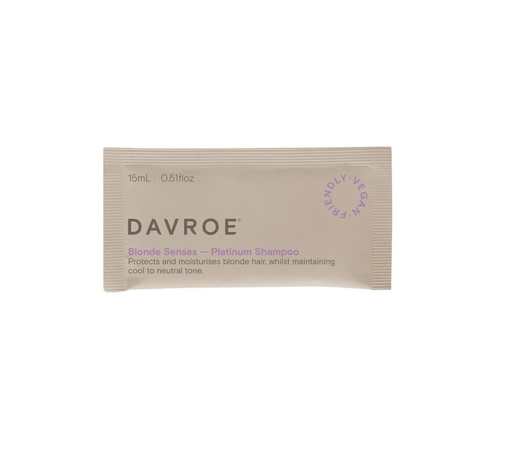 МІНІФОРМАТ тонуючий шампунь для світлого волосся з екстрактом ромашки та фіалки Davroe Blonde Senses Platinum Shampoo 15 ml